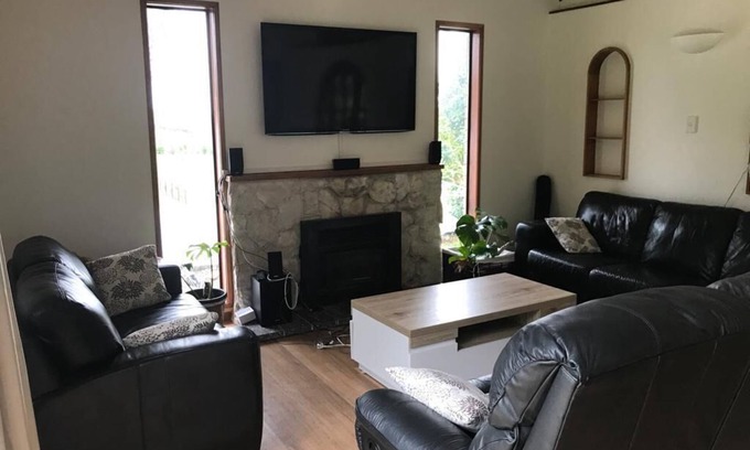 La Ferme New Plymouth is a very tidy, spacious 390 m2 house on 3 levels with 5 bedrooms, 3 bathrooms, and 3 living areas. You will also have access to the basement / game room with a 70 inches TV, a pool table, table tennis, and football table allowing easy access to a fenced swimming pool.