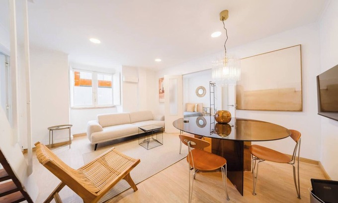 Tucked away on a quiet, resident-only street in historic Costa do Castelo, this elegant 4-bedroom duplex sleeps up to 10 guests. Enjoy panoramic views of São Jorge Castle and Lisbon’s skyline. Inside, curated artwork, designer finishes, and a dramatic chandelier create a truly unique stay—luxurious, peaceful, and just steps from the city’s vibrant center.