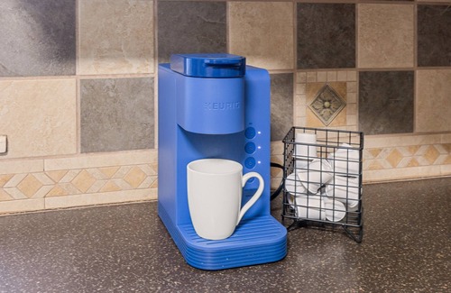 ✔ Keurig Coffee maker with K-cups, creamer, and sugar