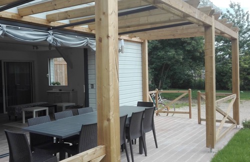 Home of 10 pers. (possible 2 pers +), ideal for 2 families, parking and garden (800 m²) private walled, wood frame of 50m ² opening onto large covered terrace and shaded with rooms and dormitory in adjoining old building. Secure bicycles on land available to tenants.
