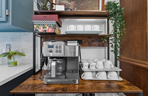 Making delicious meals is a snap in the fully equipped kitchen, which features a refrigerator, stove/oven, dishwasher, microwave, crockpot, toaster, drip and single-serve coffee makers. Coffee lovers will enjoy the complimentary Starbucks coffee provided for your stay, and everyone will stay refreshed with your own purified water dispenser.