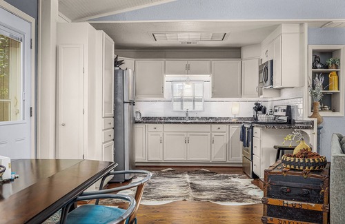 Gruene Country Cottage is nestled in the quiet community of Preiss Heights just one mile from Historic Gruene Hall. Preiss Heights brings you back into "the Country Charm" of being on the backroads next to the Big Town of New Braunfels and Historical Gruene...This charming cottage includes 1 king size bed and 1 sleeper sofa, accommodating up to four people comfortably. Equipped with a fully furnished kitchen with oven, microwave, and refrigerator/freezer, all cookware, utensils, dishes, toaster, and coffee maker. Private parking and private patio with gas grill. Fenced in area for pets (up to 20 lbs.). Towels, linens, hair dryer, iron and ironing board, big screen television with Uverse, and WiFi are also provided. Walking distance (one mile) to Gruene where you can find famous Gruene Hall- (2 min.), plentiful dining, and unique shopping. New Braunfels, just 10 min. away, offers more than 50 different dining choices, countless live music venues, antique shops, Brauntex Theatre, breweries, wineries, Guadalupe and Comal River access-(5-10 min), Schlitterbahn Water Park -(10 min), Landa Park- (5 min.), and so much more. And for those who enjoy wine, Gruene Country Cottage is just 40 minutes to Texas Wine Country-Austin. Other areas of interest include: The Alamo (SA- 40 min.), Austin (The Capitol & 6th St- 40 min), Fredericksburg (Wine Country 1.5 hrs). Favorite Dinner Restaurants include: (In Gruene) Gruene Door, Gristmill, River House, Gruene River Grille, (In NB downtown): Mozie's, Myron's, The Downtowner, Downtown Social, The Oyster Bar,... and Last but NOT least- Huisache Bar & Grille. Favorite Lunch Restaurants include: (Gruene): Naturally, Buttermilk Cafe- (Breakfast & Lunch), (NB)- Huisache, McAdoos, Black's BBQ. Favorite Breakfast Restaurants include: (Gruene) Buttermilk Cafe, Sunday Brunch @ Gruene Door, (NB)- The Downtowner (yummy), Krause's.