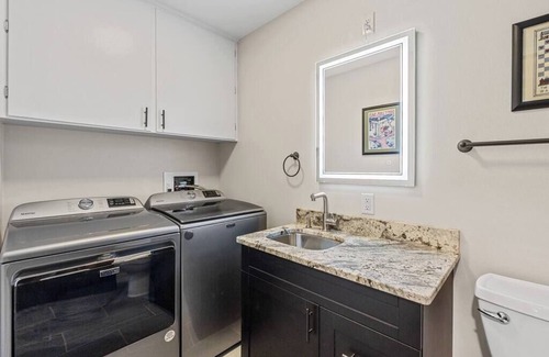 Bedrooms are average sized as was the style in the 60’s. There are 3 queen beds. Plenty of closet space for hanging clothes or storage. Clock radios, lamps, nightlights and charging stations in each bedroom. One 65” television in the living room and a smaller one in the large bedroom. LED lighted ceiling fans throughout. New appliances. Laundry room. Real hardwood floors in bedrooms. Tiled showers, keyless front entry as well as garage door keypad. 1 1/2 baths are on the main level. The other bathroom is in the basement. It is newly installed and private but the basement itself is not finished. Huge driveway for plenty of off street parking. Garage was built for 1960’s sized cars, so it is a bit short for large vehicles. Front yard is a great place to throw football or play any sport you wish. Overall I think you’ll be hard pressed to find another house this old in such great condition.