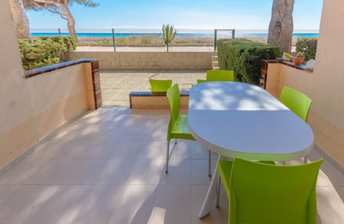 The apartment with direct access to the beach and with seaview is in a quiet area of Mont-Roig del Camp, beside the seaside resort Miami Playa. For its location and characteristics it is ideal for families or anyone who wants to disconnect and spend some holidays in a privileged environment.The apartment of 68 m2 for 4 persons, has a living room with flat screen TV, 2 bedrooms, one with a double bed and one with 2 beds, an american kitchen with a glass-ceramic hob, totally equipped with fridge, microwave, crockery, cutlery, cookware, toaster, fruit squeezer and a coffee pot. It also has a large terrace with table and chairs and direct access to the beach.It has a TV with satellite en french, air conditioning, wifi, washing machine, clothe dryer, hairdryer, iron and ironing board.The urbanization Guardamar has a communal swimming-pool for adults and children with grass, a nice garden, talb tennis, basketball basket and outdoor parking.It is 5 minutes away from Miami Playa, 10 minutes from Cambrils adn 15 minutes from Salou