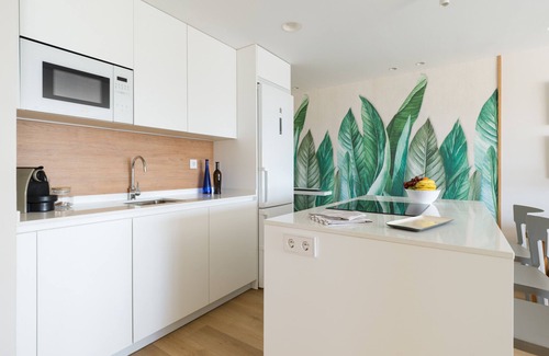Accommodation of 85 m², with exquisite decoration, spacious living room with large windows overlooking a quiet communal pool and the sea in the background.