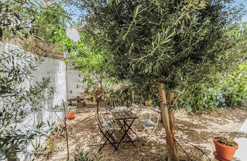 The bedroom is well-lit, providing a comfortable and inviting atmosphere. Enjoy your morning coffee or evening drinks on the common terrace.