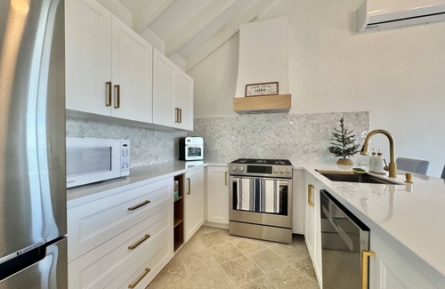Newly built guest house in the premier beachfront neighborhood Shoys. Open and bright space with stunning views of the Caribbean Sea and Buck Island. Serene bedroom suite with king size bed, AC, walk in closet and bathroom. Enjoy dining under the stars on the balcony overlooking the rolling green hills and the turquoise waters. If you need extra space, the charming loft provides two extra beds and the living room has a pull out couch. Everything is new in the house and if you are bringing kids there are Magnatiles and other games to keep them entertained.