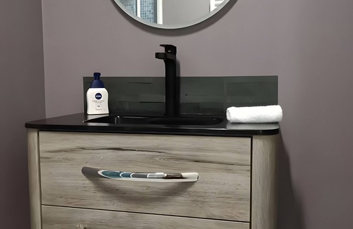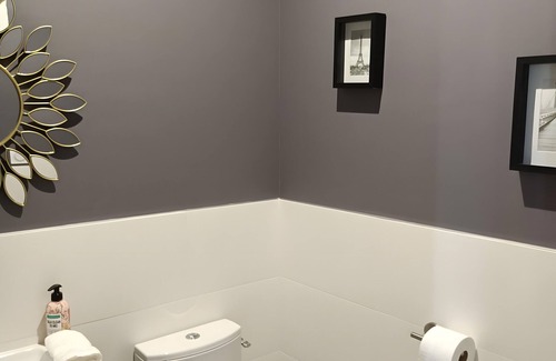 The guest house La Chambre Rayures with step-free access and interior in Eymet is the perfect accommodation for a stress-free holiday with your loved ones. The 250 m² property consists of a living room, a well-equipped kitchen, 1 bedroom and 1 bathroom as well as an additional toilet and can therefore accommodate 2 people. Additional amenities include high-speed Wi-Fi (suitable for video calls) with a dedicated workspace for home office, a TV, a washing machine, a dryer, a game console as well as children's books and toys. A baby cot and a high chair are also available. This accommodation does not offer: air conditioning.
