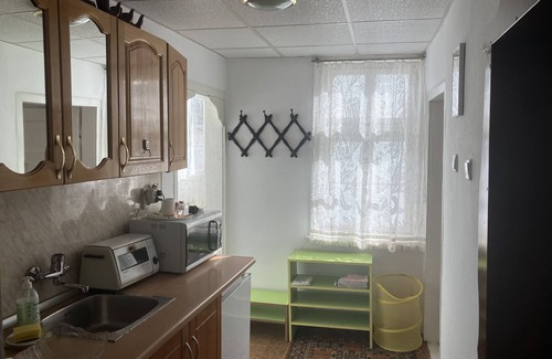 The house is located near the center of the mountain town of Razlog. We offer transportation to the ski slope and other nearby places. Heating is provided through radiators. The house accommodates 5 people, including a children's room with 2 separate beds, a bedroom with a double bed, and a living room with a sofa bed. It features a kitchen with a grill and microwave. Parking is available, and there's a television. No pets are allowed, and smoking is not permitted inside. The garden in front of the house can be used.