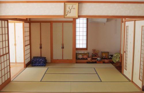 BathroomToilet paper, Body soap, Bathtub or shower, Bathtub, Private bathroom, Shampoo, Bidet, Shower, Toilet, Towels, Hairdryer, ConditionerMedia & TechnologyFlat-screen TV, TVGeneralFire extinguisher, Smoke Alarm, Air conditioning, Mosquito net, Trash cans, Lockers, Private entranceActivitiesHot tubOutdoorsPatio, Barbecue, BalconyKitchenStovetop, Microwave, Dining table, Electric kettle, Refrigerator, Kitchenware, Kitchen, Washing machineLiving AreaDesk, Sofa, Sitting area, Dining areaViewViewBedroomLinensBuilding CharacteristicsDetachedRoom AmenitiesTatami (traditional Japanese flooring), Drying rack for clothing, Clothes rackPhysical distancingSingle-room AC for guest accommodation |