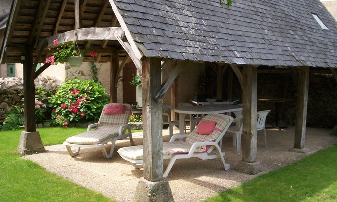 The walled garden and flowers is available, with chairs resting, garden furniture, barbecue house.