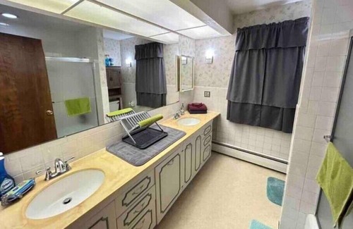 Your private entrance passes through the basement. You will need to go down some stairs to get into the house and then up some stairs to get to your Guest Suite, but all these spaces are yours and ONLY yours. Feel free to hang out in the living room area in the basement, but the loud arcade-like games require pre-approval due to the noise level.