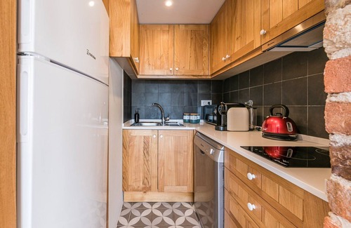 This space also has a kitchenette fully equipped with essential cookware and cutlery to whip up a delicious meal. It includes an electric hob, oven, microwave, coffee machine, and other utilities.