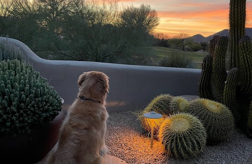 GuggenHaus on The Green is 1 of 3 western US Guggenheim family rental properties. This monthly rental desert oasis has everything you would expect in a 1st class Scottsdale vacation rental. This home is located in the gated community of the 5th Green in the the world renown Boulders Resort with unobstructed view’s of the green, the Boulders outcropping and Black Mountain. This tastefully and completely updated home offers plenty of natural light, soaring ceilings and large picture windows with electrically operated interior and exterior sun shades. Preparing large meals or just enjoying morning coffee is an absolute joy in the large, modern, fully stocked kitchen with top of the line appliances including a Viking gas stove top. The home offers 3 spacious bedrooms along with 3 full baths including new hand hewn bamboo flooring in all three bedrooms. A 65” flat screen HD TV is part of the home theater system in the living room area for those movie nights. The large living room also offers plenty of space for family and guest gatherings.