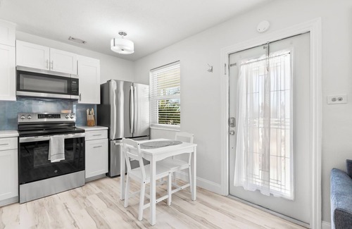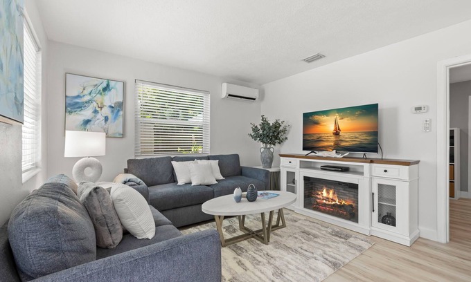 This lovely bungalow is completely renovated and equipped with everything needed to enjoy an unforgettable beach vacation. Walk to beach, walk to restaurants, walk to shopping/farmer’s market and beach bars, the list goes on! Close to everything yet tucked away in a quiet neighborhood when you’re ready for some quiet relaxation. Inside, you’ll appreciate the care and attention to detail in this charming 1 bedroom/ 1 bathroom, ground-floor unit. With 2025 renovations, guests will enjoy updates to kitchen, bathroom and all new furnishings. The primary bedroom features a queen bed, en suite bath and walk in closet while the living room offers a queen sleeper sofa for guests who can’t quite make it home. Outdoor amenities include tropical landscaping, grill, 2 bikes upon request, washer/dryer, and a private and fenced backyard. This property is pet friendly so don’t leave home without your well-behaved 4-legged friend. In the front yard, beautiful pavers provide ample parking for residents and their guests.
