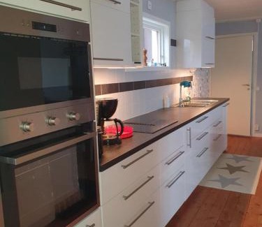 Featuring a terrace, Gullranda offers accommodations in Älmhult. A public bath is available for guests. There's an outdoor fireplace and guests have access to free Wifi, free private parking, and an electric vehicle charging station. With direct access to a patio with garden views, the vacation home consists of 2 bedrooms. Offering a balcony with lake views, this vacation home also features a flat-screen TV, a well-equipped kitchen with a dishwasher, an oven, and a microwave, as well as 1 bathroom with a shower and a hair dryer. The property has an outdoor dining area. A selection of options including fruit, juice, and cheese are available for breakfast, and breakfast in the room is also available. Guests can make the most of the warm weather with the property's barbecue facilities. Outdoor play equipment is also available at the vacation home, while guests can also relax in the garden. The nearest airport is Växjö Airport, 42 miles from Gullranda.