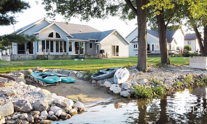 Sprawling 2000 sq ft 4 bed 2.5 bath waterfront luxury ranch style home that sleeps up to 11 and all on a wide channel leading to famous all-sports 2680 acre Gun Lake, the largest inland lake in West Michigan. This Gun Lake neighborhood home is the perfect quiet vacation getaway and great place make memories!