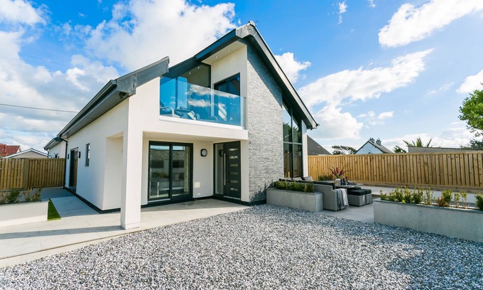 Gwel y Mor is one of two identical houses next to each other, completed in 2022 in the heart of the coastal village of Rhosneigr. Shops, bars, cafes, restaurants and sandy beaches are all within walking distance.