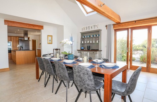 Gwelfor Barn is an impressive property resting in Llangoed near Beaumaris, Wales. It is host to five bedrooms, comprising of a king-size with Smart TV, dressing room and en-suite bathroom, a king-size with en-suite shower room, a ground-floor king-size with en-suite bathroom, a ground-floor double with en-suite bathroom, and a ground-floor twin, along with a lower-ground-floor shower room and changing area, and a cloakroom, this property can sleep up to ten guests. There is also a kitchen, a utility, a sitting/dining room with woodburning stove, a snug and an open-plan living room with kitchen, dining area and sitting area. Continuing to impress, the property houses a lower-ground-floor indoor swimming pool and ample off-road parking, along with a large decked area with table and chairs, as well as access to a private meadow. Gwelfor Barn is a wonderful choice at any time of the year in beautiful Anglesey. Please note: This property does accept 2 pets.