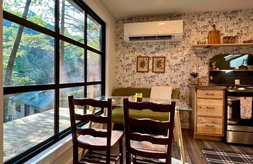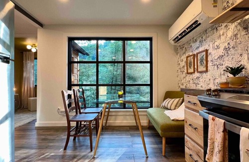Gwen’s Cottage is located on the privately owned and operated estate, Water’s Edge, which was recently re-established in January 2022 by Western Pennsylvania native, Gwendolyn Reno. This cottage is a newly renovated, 490sqft, studio-style accommodation, perched along side the Slippery Rock Creek adjacent to McConnells Mill State Park. This charming cottage has a wrap around deck that quite literally over-looks the creek and faces the state park land located just across the water.