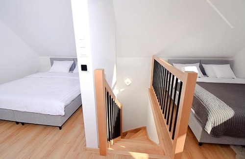 Media & TechnologyTV, Flat-screen TVGeneralPrivate entrance, Hypoallergenic, Fan, Heating, Hardwood or parquet floors, Air conditioning, Tile/Marble floorBathroomToilet paper, Private bathroom, Toilet, Hairdryer, Bathtub or showerKitchenRefrigerator, Microwave, Electric kettle, Dishwasher, Dining table, Kitchenette, Stovetop, Kitchen, KitchenwareOutdoorsPatio, Outdoor dining area, Outdoor furniture, Terrace, BalconyLiving AreaSitting area, SofaViewView, Lake viewServicesWake-up serviceBedroomLinensAccessibilityUpper floors accessible by stairs onlyRoom AmenitiesSofa bed, Clothes rack |