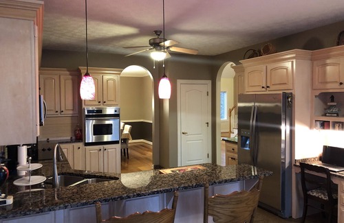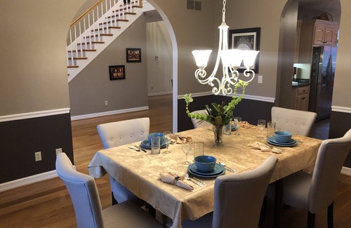 Enjoy our 2 story home, 5 bedrooms plus one room with a futon also, decor that features Kentucky Bourbon and Horse Racing. Our home is situated on 2.5 acres and backs up to Benson Creek. The home consist of 3 levels. We have a fenced in area that is ideal for pets or small children. Ideally located for Bourbon Tours, Vineyards, Breweries, trips to Keeneland or Churchill Downs, UK/UL/KSU or visits to the Capital.