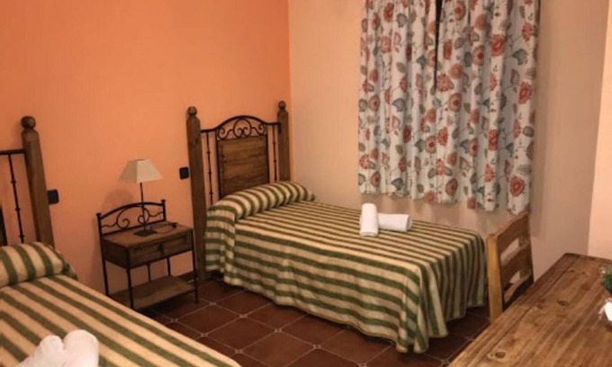 It stands out for its tranquility and comfort. Large room (40 m2) spacious and very comfortable, equipped with two very comfortable single beds, air conditioning, soundproofing, hydromassage showers, wardrobe, private bathroom, and views of the garden. It is located on the ground floor, so They are suitable for the elderly or people with mobility problems. Large parking area...Remarks: the facilities of the excellent municipal swimming pool are opposite (just cross the street).