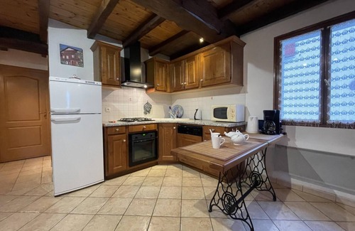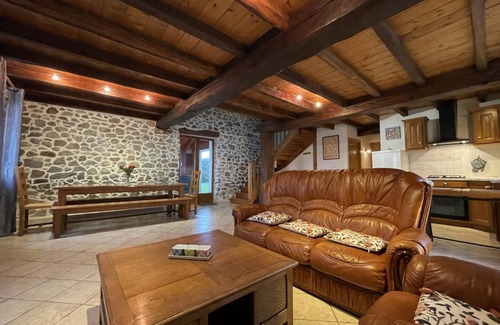 Beautiful detached house in a neighborhood 1 km from the village, near the owners' house. Panoramic view of the surrounding mountains. Ground floor: fitted kitchen area (gas hob, electric oven and microwave, fridge-freezer, dishwasher). Living room, lounge area (TV, DVD player, wood stove). 1 bedroom (1 double bed). Shower room, wc, laundry room (washing machine). Upstairs: 2 bedrooms (1 double bed, 2 single beds). Bathroom/wc. Electric heating included. Wood extra. Animal accepted 3€/day. Possibility to rent sheets + linen. Wifi internet connection. Covered terrace. Courtyard, enclosed garden. Garden furniture, barbecue.