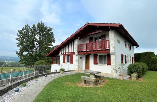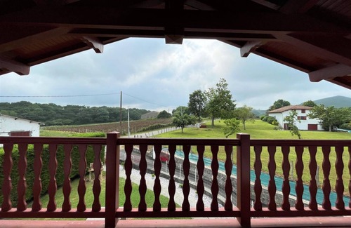 Lodging in a house respecting traditional Basque buildings, near a farm (sheep). Presence of a studio inhabited by the owner in the basement. Ground floor: Equipped kitchen (oven and microwave, fridge-freezer, 3 gas 1 electric hob, dishwasher). Living room, lounge area (TV, DVD player). WIFI internet connection. Veranda offering a lovely view of the mountains. 1 bedroom (1 double bed), shower room, wc. Upstairs: 2 bedrooms (2 single beds, 1 double bed). Mezzanine. Balcony. Bathroom, WC. Heating fuel in supplement. Balcony. Sheets and towels not provided. Common garage in the basement of the house (1 car space is reserved for you - washing machine). Enclosed grounds, terrace, garden furniture, barbecue.