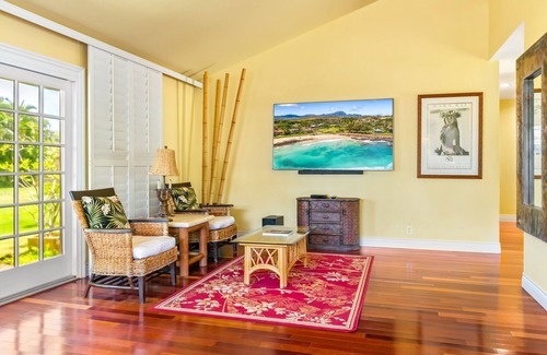 Built for the Beachcomber: Hale Huna is a short walk via the green belt to Shipwrecks beach (.8 mi.), the perfect place to watch the sunrise. In the evenings, head to Poipu Beach (.6 mi.), a short walk from the house via the green belt, to admire the sunset.