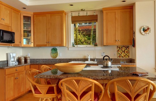 Each bedroom provides an ocean view and the open and spacious floor plan provides a wonderful setting for the entire family or group to gather. You can relax on the oceanfront lanai and watch the crashing waves, turtles floating a few feet away, as well as the colorful Kauai sunsets over the Pacific.