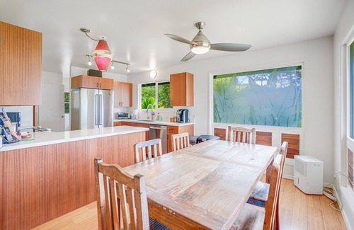 Full kitchen, dishwasher, complimentary high speed internet access, Cable TV, washer & dryer compliment this charming beach home right on serene Anahola Bay.