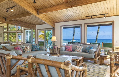 This property consists of two homes: 3+ bedroom beach home (Hale Mo'olelo) together with a 2 bedroom beach cottage (Hale Ho'olapanai). These homes are situated on a beautiful sandy north shore beach just around the corner from famous Tunnels (Makua) Beach.