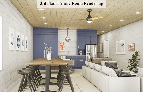You'll enjoy 8 King Bedrooms (all with private en-suite baths), 2 Bedrooms that each have two Queens and two Twin Daybeds, and now, en-suite baths. The top floor now has 2 bunk rooms, each with 7 built-in twins, and 2 full baths.