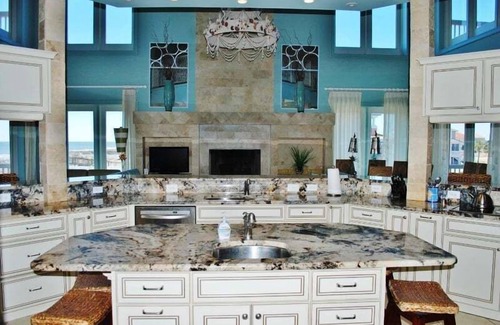 With 12 bedrooms and 13 full baths, this beautiful designer home will accommodate up to 42 people. Halekai III has a main kitchen, plus a butler's pantry/bar that is perfect for serving and additional food storage and prep. Perfect setting for a luxury beach vacation.