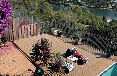 Ground level in 2 level house . 1 bedroom, 1 big nice lounge room, 1 bathroom. Kitchen and laundry combine . The house located in a spot with an amazing view, swimming pool, street parking. 10 mins walk to train and bus station 25 mins drive to Sydney CBD and the airport.