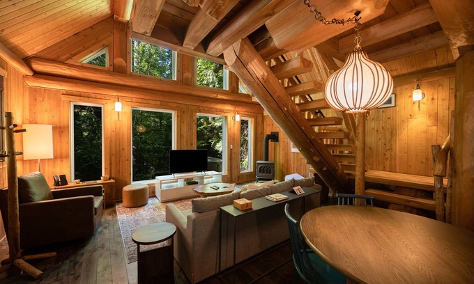 Best-rates for the Ucluelet cabin starts from $267 per night with includes Pet Friendly, TV, Security/Safety, Parking, Ocean View, Oceanfront, Fireplace/Heating, Barbecue/Outdoor Cooking, Internet, Kitchen, Bedding/Linens, Child Friendly, Hot Tub, View, Balcony/Terrace, Wellness Facilities With all other amenities included. Treehouse Rentals offers a wide range of treehouses, forest homes, cabins, and off-grid retreats, ensuring each traveler discovers their ideal nature getaway—be it a family adventure, a peaceful retreat, or a pet-friendly retreat with the whole group.