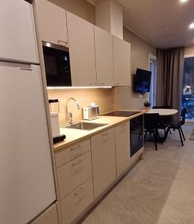 Offering barbecue facilities, Halla Chalet, Aurora Borealis, ski & lake, free wifi, Vuosseli Resort Ruka features accommodations in Kuusamo. The air-conditioned accommodation is 30 miles from Riisitunturi National Park. There's an outdoor fireplace and guests have access to free Wifi, free private parking, and an electric vehicle charging station. Featuring a terrace with lake views, this chalet also comes with a flat-screen TV, a well-equipped kitchen with a dishwasher, an oven, and a microwave, as well as 1 bathroom with a bidet and a hair dryer. For added privacy, the accommodation has a private entrance and soundproofing. Guests at the chalet will be able to enjoy activities in and around Kuusamo, like walking tours. Skiing, cycling, and hiking are possible within the area, and Halla Chalet, Aurora Borealis, ski & lake, free wifi, Vuosseli Resort Ruka offers a private beach area. Kuusamo Airport is 19 miles from the property.