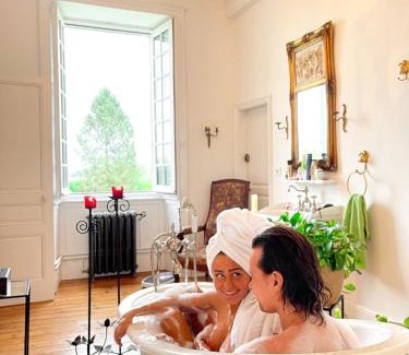 Featuring garden views, Halte pro ou romantique au Chateau isigny, salon particulier & confort au coin du feu in Isigny-le-Buat features accommodations and a terrace. Housed in a building dating back to 18th century, this bed and breakfast is 12 miles from Scriptorial d'Avranches, Musee des Manuscrits du Mont Saint Michel and 22 miles from Mont Saint Michel Abbey. There's a picnic area and guests can access free Wifi and free private parking. At the bed and breakfast, each unit includes a private bathroom and bed linen. A selection of options including fresh pastries, fruit, and juice are available for breakfast. An indoor play area is also available at the bed and breakfast, while guests can also relax in the garden. Mont Saint-Michel is 22 miles from Halte pro ou romantique au Chateau isigny, salon particulier & confort au coin du feu, while Granville Train Station is 30 miles from the property. Rennes–Saint-Jacques Airport is 59 miles away.