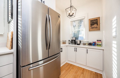 • The refrigerator is stocked with oat milk, and almost any condiment you would need, including: ketchup, mustard, ranch, hot sauce, BBQ sauce, and mayo.