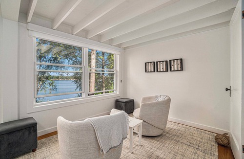 Enjoy a vintage 100+ year-old lakefront cottage that's been tastefully renovated to provide all of the modern conveniences of home. Includes huge wrap-around enclosed porch overlooking Hamlin Lake. It is primarily single-level living with two bedrooms, living room, kitchen and bathrooms on the main level. The upper level is a loft with a double bed. There is also a daybed on the porch for an additional sleeping option.