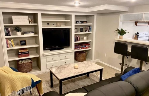 At Hampton Hideaway, you'll access your walk out basement unit through a private entrance. A full size washer and dryer are at your disposal so you can do laundry while you enjoy a good nights rest in your queen sized bedroom suite with plenty of storage. Not ready to sleep? Take advantage of your cozy living room with free streaming and games, NEWLY RENOVATED bathroom, full kitchen, coffee bar, dining room, and bar seating.