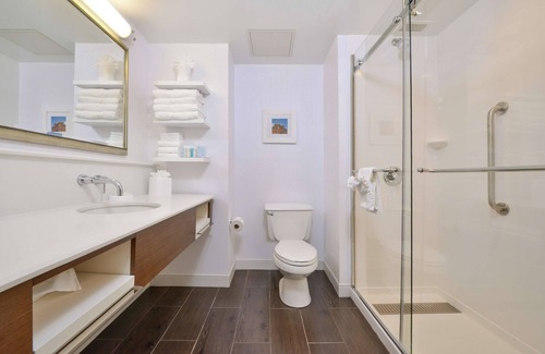 Recreational amenities at the hotel include a fitness center and a seasonal outdoor pool.