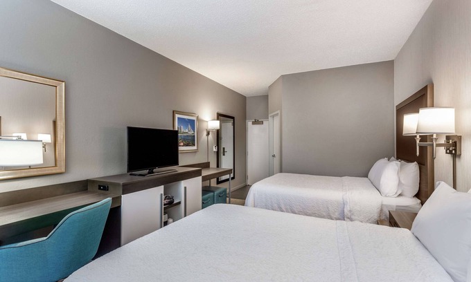 Hampton Inn Milwaukee-Airport offers 102 air-conditioned accommodations with coffee/tea makers and hair dryers. 32-inch LCD televisions come with digital channels.