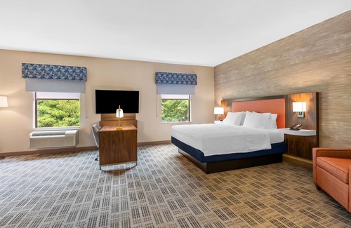 Hampton Inn & Suites Grove City offers 90 air-conditioned accommodations with safes and coffee/tea makers. 35-inch LCD televisions come with cable channels and pay movies. Guests can make use of the in-room refrigerators and microwaves.