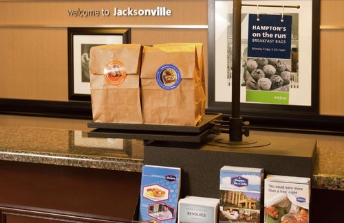 Hampton Inn & Suites Jacksonville-Airport is a 7 minutes' drive from the Jacksonville International Airport. Guests can start their day with a complimentary hot breakfast buffet, and then take a refreshing plunge in the outdoor pool. Guests will enjoy the convenience of a complimentary airport shuttle and free WiFi. All rooms feature a flat-screen TV. Guests will enjoy the convenience of a microwave and a small refrigerator. A desk with an ergonomic chair is also offered. Guests can grab a quick snack from the 24-hour convenience store. Business guests can get some work done at the business center. A fitness center is also provided. River City Marketplace is 1.4 mi from the property. The Budweiser Brewery Experience is 8.3 away.