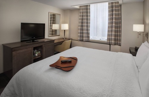 Hampton Inn & Suites Milwaukee Downtown offers 138 accommodations with laptop-compatible safes and safes. 37-inch flat-screen televisions come with premium cable channels and pay movies. Refrigerators, microwaves, and coffee/tea makers are provided. Bathrooms include shower/tub combinations, complimentary toiletries, and hair dryers.