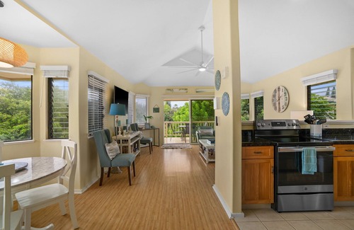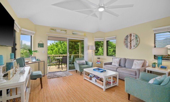 This beautiful, modern Kauai vacation home makes an excellent home base while exploring all the beauty and adventure Kauai has to offer. Located in Princeville, you will find yourself surrounded by beaches, mountains and North Shore hospitality. all within steps of your front door. Shopping, groceries and shave ice are less than one mile away at Princeville Shopping Center. Hideaway's Pizza is a 5-minute walk! The area has great hikes, kayaking and prime surfing! This property is a two story, 2 bedroom, 2.5 bathroom private condo with hardwood and tile flooring throughout. The master bedroom has a King size Tempurpedic bed with an ensuite bathroom with a shower and bathtub. The second bedroom is furnished with a queen-size bed and an adjacent bathroom with shower. When you come back to your beach cottage after a days adventure you can make dinner in your fully equipped kitchen and enjoy sunset from your lanai or downstairs porch swing. Parking for one car is included in the cost of the rental and you have your own designated spot. Pack light, an iron, hairdryer, and kitchen basics are all waiting for you in the condo. The Fine Print: Almost no homes in Hawaii have air conditioning. Please be aware, and if you have any questions about this, please ask before booking. We want our guests to be happy. We do require a rental contract to be signed prior to confirming your reservation. Any questions, or if you'd like to see it prior to booking, please ask. Renters need to be at least 21 years of age. Kauai is a beautiful island, I dare say it will be one of the most beautiful places you will visit ever. It has a rural vibe, and there are lots of outdoor activities to do and enjoy. The Princeville area is especially beautiful with mountains, beaches, cliffs and taro plantations all intermingling along this north shore of Kauai. Any questions about Kauai, please ask. We love to share our part of the world with you.