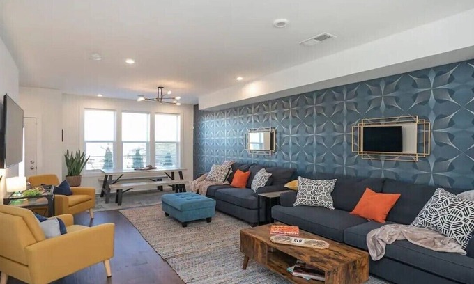 This modern home that sleeps 8 people comfortably is just 8 minutes from downtown Nashville and only 5 minutes away from The Grand Ole Opry, Opry Mills, 5 points in east Nashville and the nations! Enjoy the private rooftop Patio and Plenty of space! Each Bedroom is equipped with a Queen-sized bed and each Sofa folds out into two additional Queen-sized beds! We allow small pets and have food bowls, poop bags, and a crate for them!