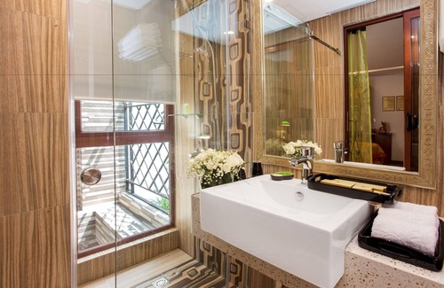 Hanoi Golden Holiday Hotel offers 25 air-conditioned accommodations with DVD players and minibars. Each accommodation is individually furnished and decorated. Pillowtop beds feature Egyptian cotton sheets and premium bedding. 42-inch plasma televisions come with premium digital channels. Guests can make use of the in-room refrigerators and coffee/tea makers. Bathrooms include bathtubs or showers with rainfall showerheads and hydromassage showerheads, bathrobes, slippers, and designer toiletries.